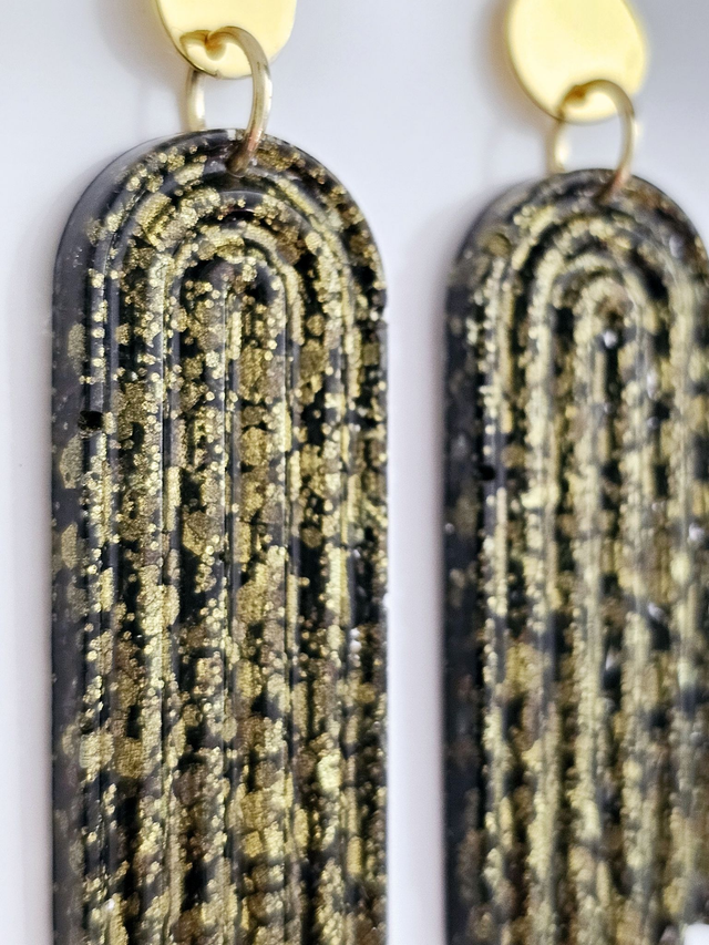 Les boucles d'oreilles sont fabriquées en gel époxy de qualité, avec des pigments colorés et des paillettes.