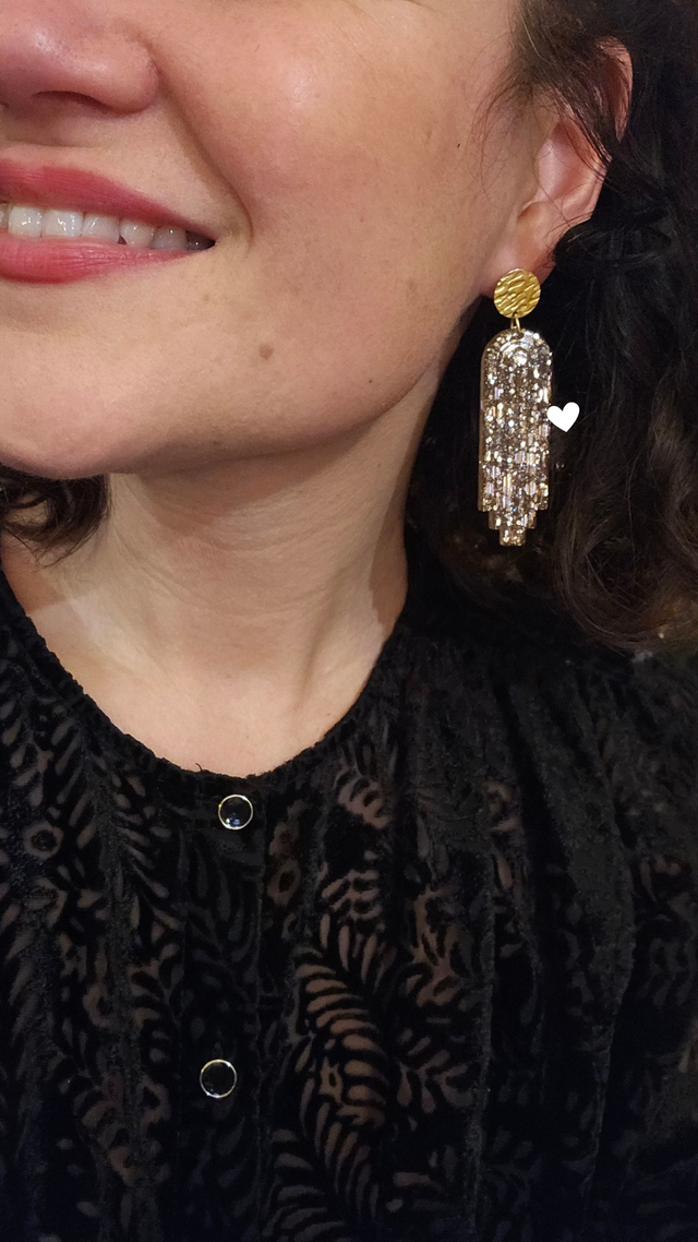 Les boucles d'oreilles sont fabriquées en gel époxy de qualité, avec des pigments colorés et des paillettes.
