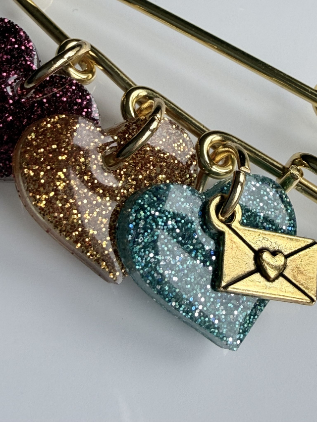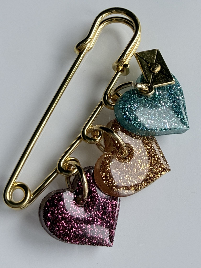 3 ptits coeurs à paillettes : prune, doré & bleu