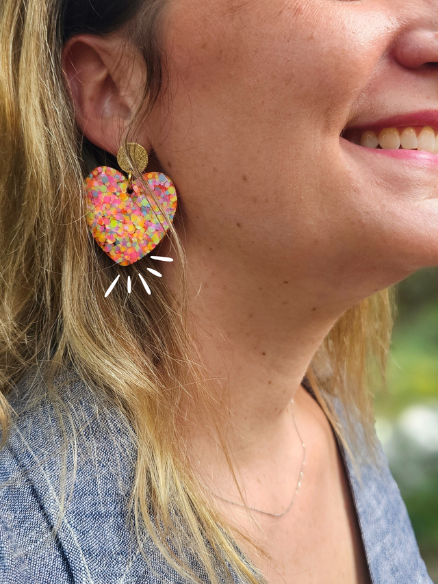 Les boucles d'oreilles sont fabriquées en gel époxy de qualité, avec des pigments colorés et des paillettes.