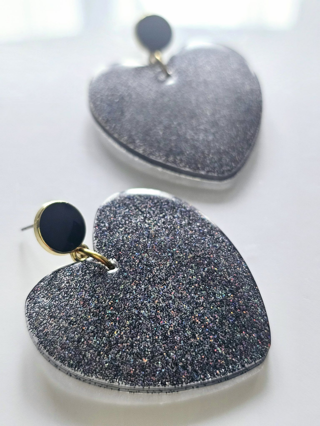 Les boucles d'oreilles sont fabriquées en gel époxy de qualité, avec des pigments colorés et des paillettes.