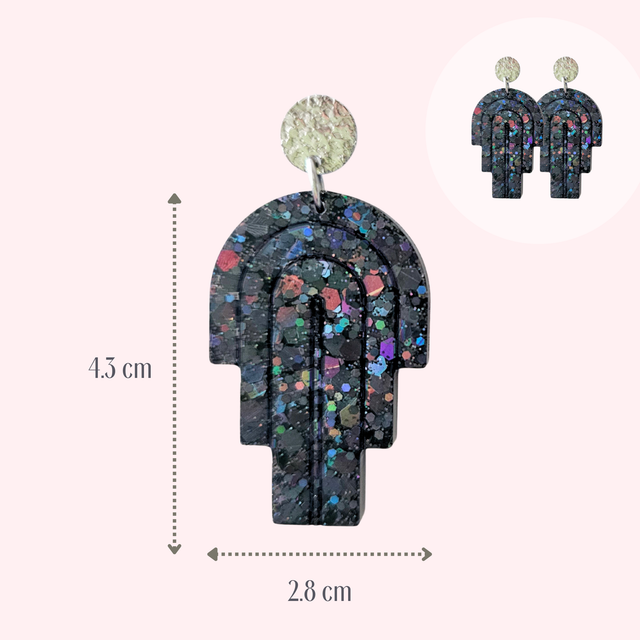Les boucles d'oreilles sont fabriquées en gel époxy de qualité, avec des pigments colorés et des paillettes.