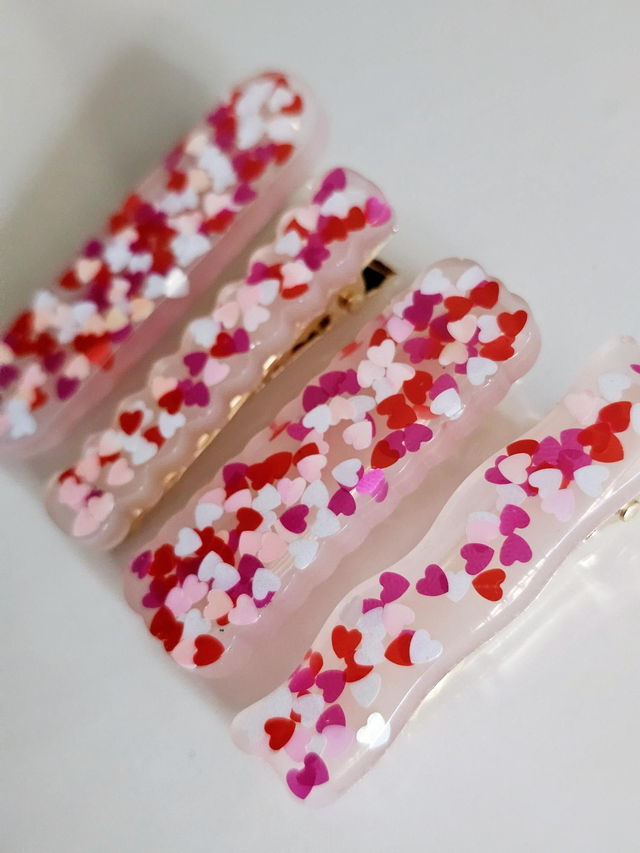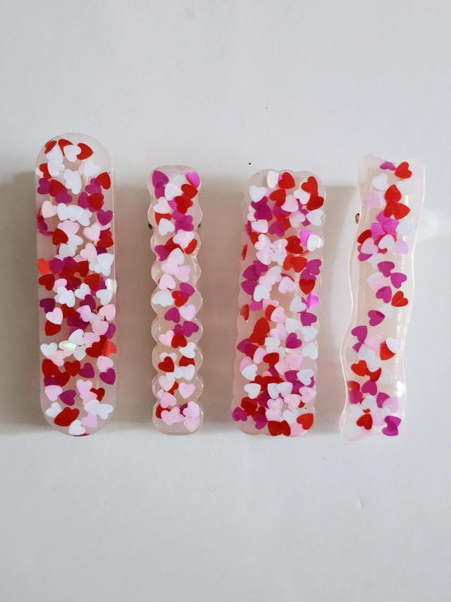 SET 4 BARRETTES COEURS ROUGES & FUSCHIAS