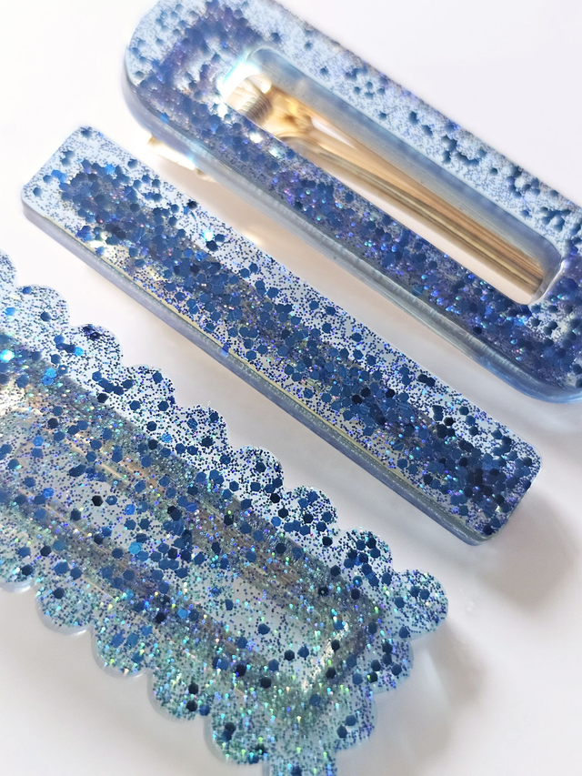 TRIO BARRETTES NUANCES BLEUES PAILLETTÉES
