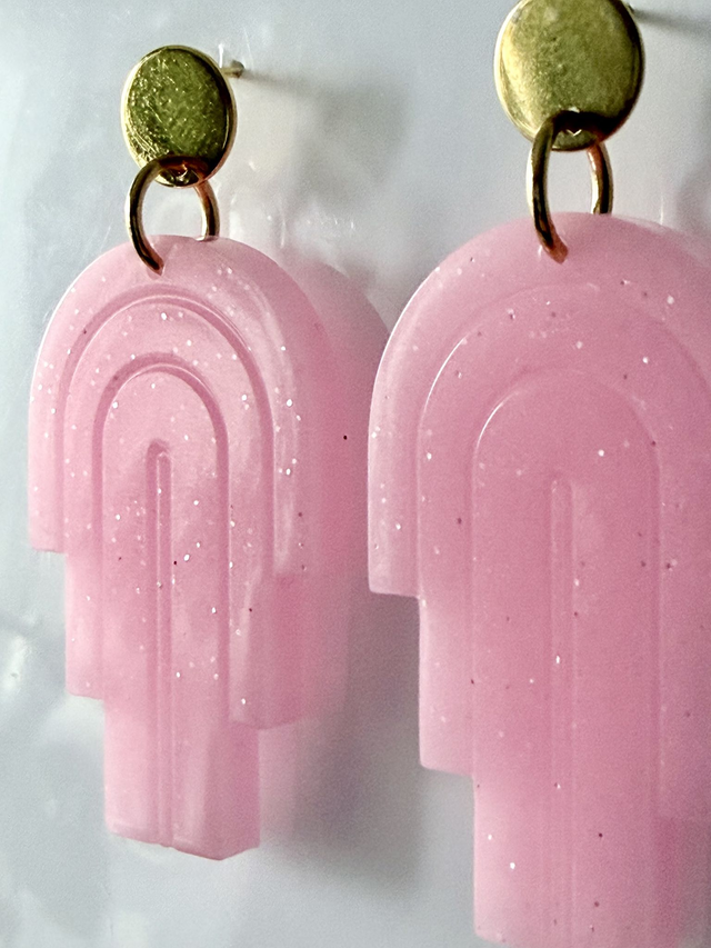 Les boucles d'oreilles sont fabriquées en gel époxy de qualité, avec des pigments colorés et des paillettes.