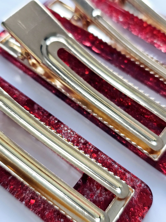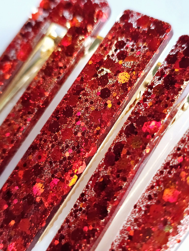 SET 4 BARRETTES ROUGES PAILLETTÉES